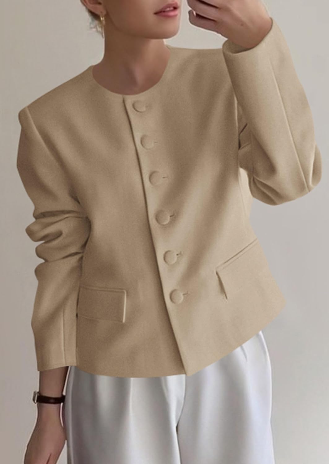 RETTYGARDEN Blazer feminino de manga comprida com botões