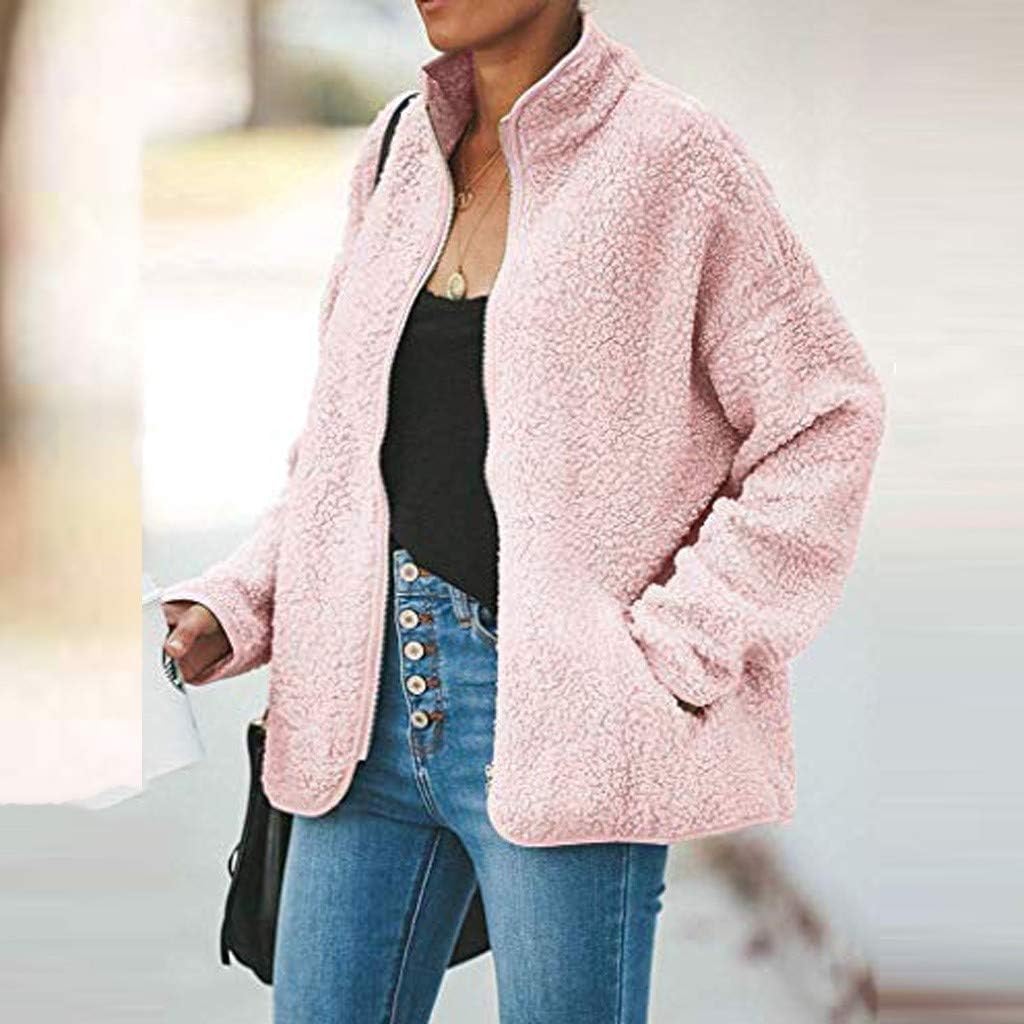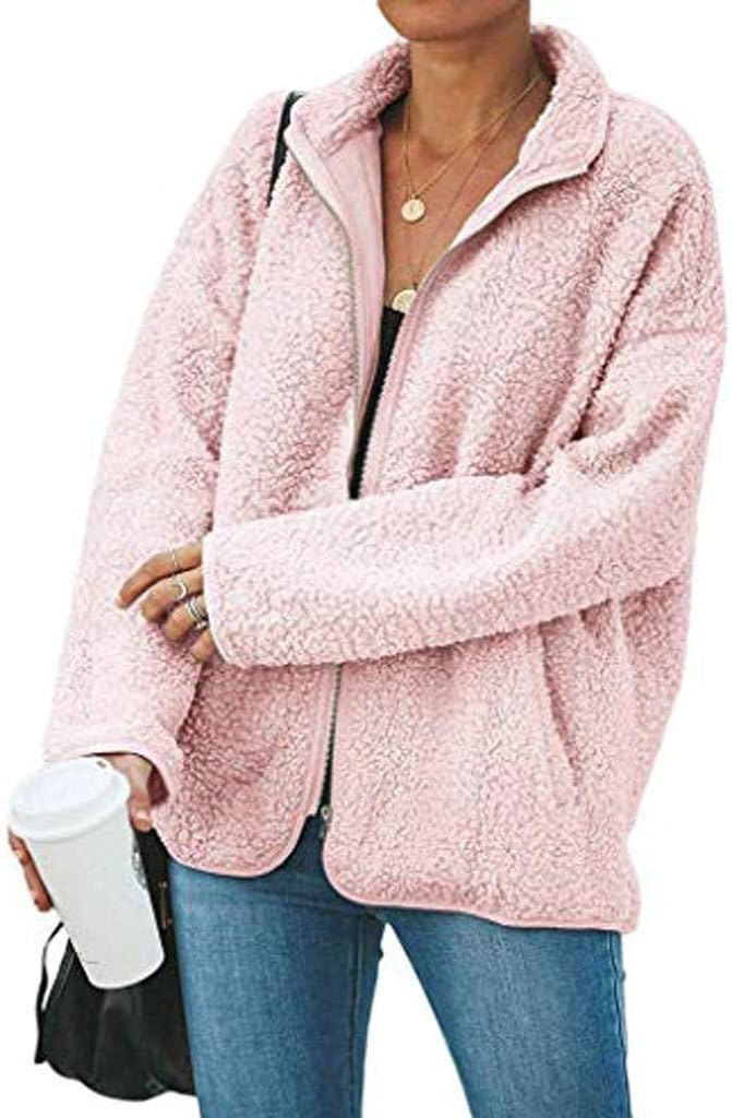 Bigfanshu Jaquetas para mulheres moda grande jaqueta com zíper felpudo casaco de inverno com bolsos folgados