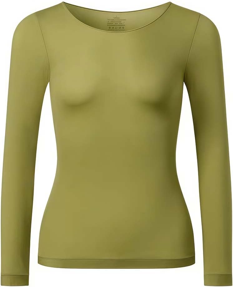 Blusa feminina de manga comprida com camada de base, camisa térmica para atividades ao ar livre, camisa confortável com gola redonda