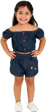 Conjunto Jeans Infantil Menina 2 Peças – Blusa + Short | Confortável, Moda Kids está disponível em tamanhos que acompanham o crescimento da sua pequena, garantindo conforto e estilo em todas as fases. Confira as opções: TABELA DE MEDIDAS / BLUSA E SHORT BLUSA Idade aprox. Comprimento Largura 2 anos 32 cm 28 cm 4 anos 36 cm 32 cm 6 anos 40 cm 36 cm 8 anos 44 cm 40 cm SHORT Idade aprox. Comprimento Cintura (sem esticar) 2 anos 22 cm 22 cm 4 anos 26 cm 24 cm 6 anos 30 cm 26 cm 8 anos 34 cm 28 cm Dicas para escolher o tamanho ideal: 1. Meça a altura da criança e consulte nossa tabela de medidas (disponível nas imagens do produto). 2. Se preferir um caimento mais folgado, recomendamos pegar um número acima. 3. O jeans possui *elasticidade moderada*, permitindo ajuste confortável. Cores disponíveis: Azul claro, azul escuro. conjunto jeans menina, conjunto de jeans infantil menina, conjunto infantil menina jeans, conjunto short jeans menina, girls denim set, girls denim outfit set, girls jeans set, toddler girls denim set, kids girls jeans outfit, moda infantil menina jeans, roupa infantil menina jeans, conjunto jeans infantil, denim co-ord set girls, denim girls outfit, roupa casual menina jeans conjunto casual jeans menina, outfit jeans menina, conjunto jeans infantil feminina, kids denim two piece set girls Obs.: Todas as peças possuem etiqueta macia e costuras reforçadas para maior durabilidade. Precisa de ajuda para decidir o tamanho? Pergunte-nos!