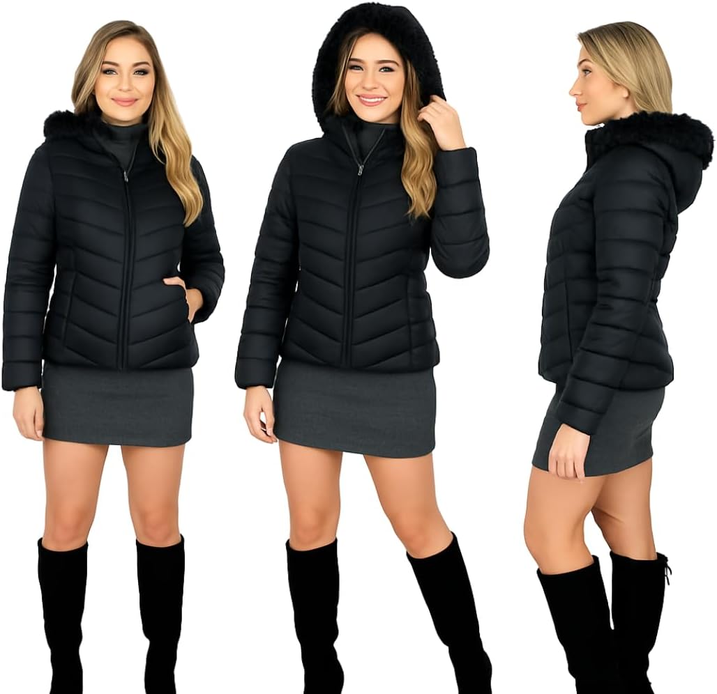 Jaqueta Feminina Nylon Forrada Com Pelos Capuz Removível
