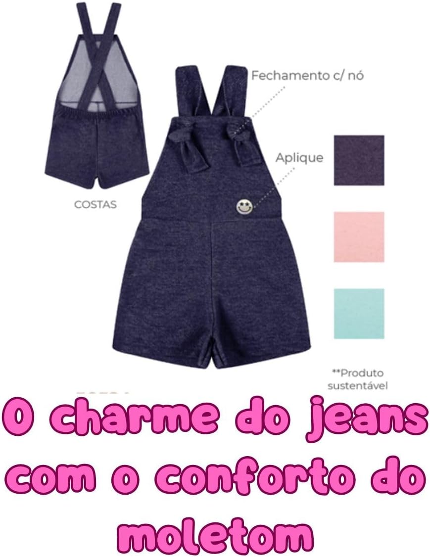 Jardineira de Bebe e Infantil Feminina Moletom ecologico Jeans