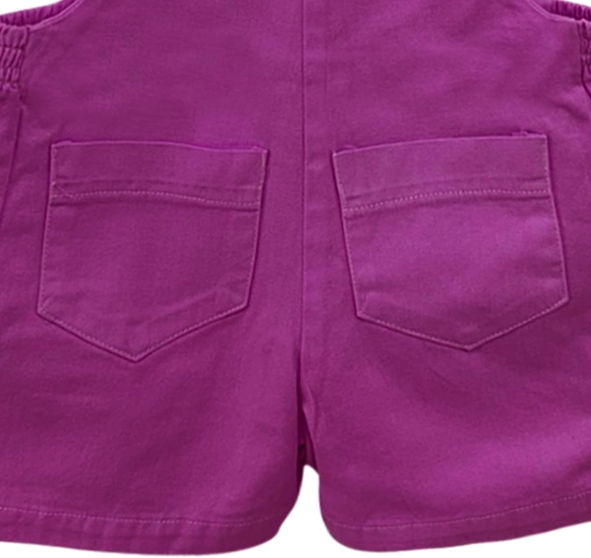 Jardineira Infantil Jeans Menina Lilás Lavanda Pink Macacão Short Verão