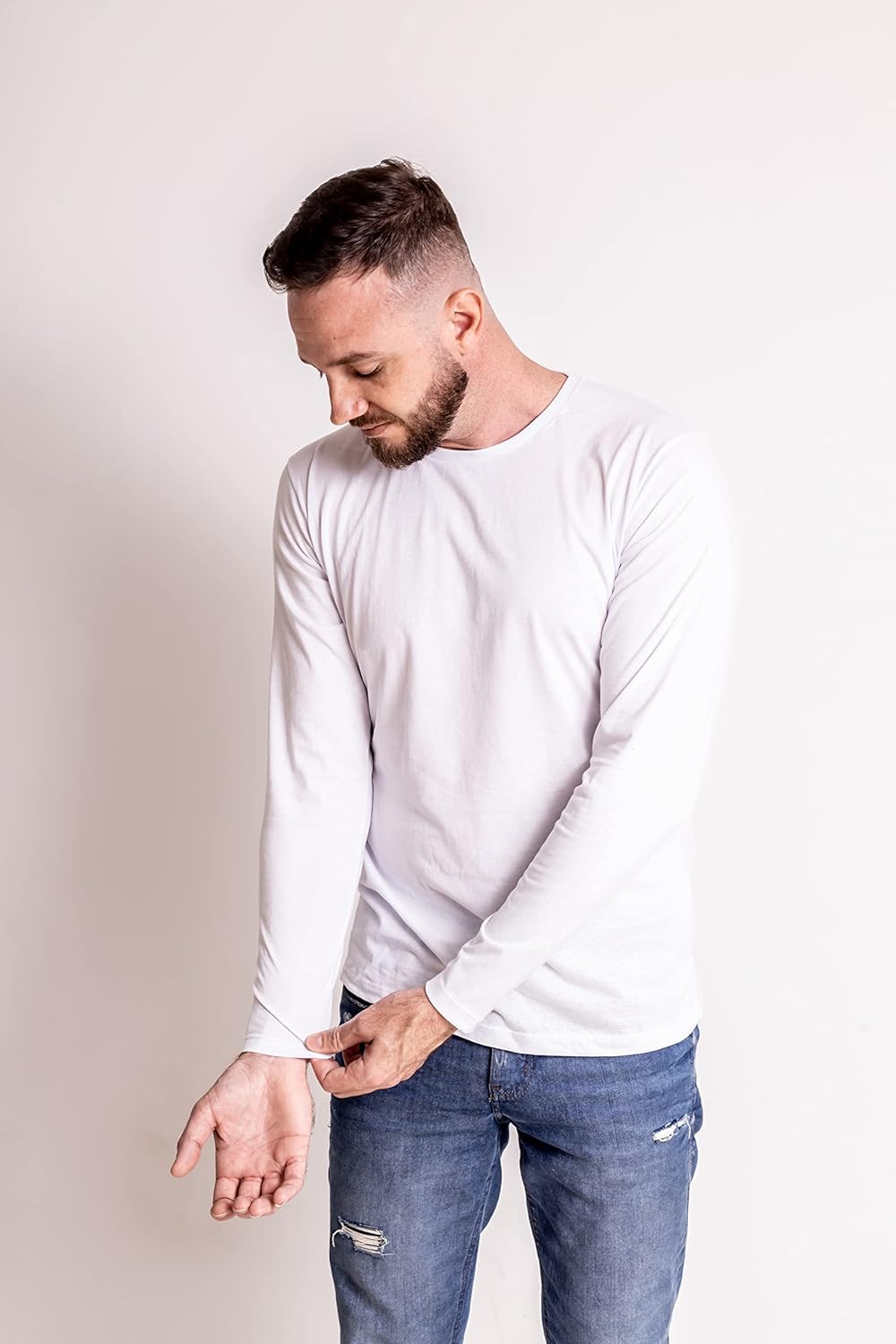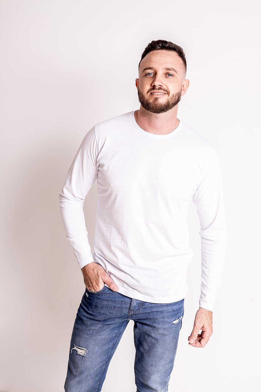 Kit 5 Camisetas Manga Longa Masculinas Slim Algodão