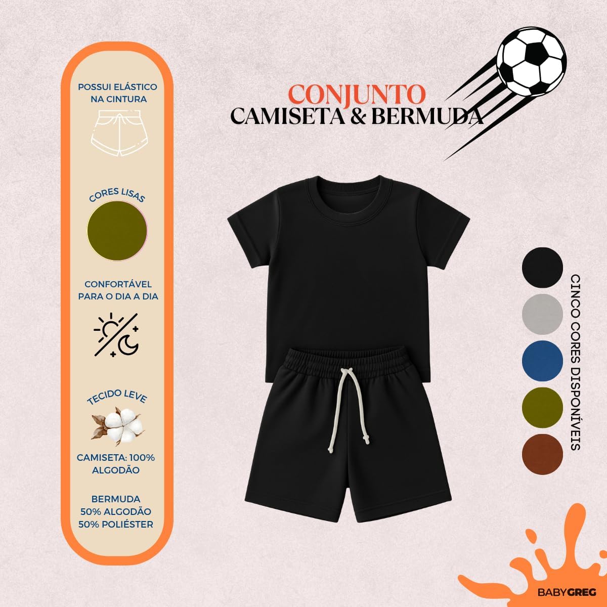 Praticidade e conforto para o dia a dia do seu menino! O Kit 6 Peças reúne três conjuntos completos com camisetas e bermudas lisas, perfeitos para o verão e para acompanhar a rotina das crianças.