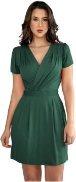 Vestido Curto Decote Transpassado Envelope Soltinho Acinturado Manga Curta Casual Elegante