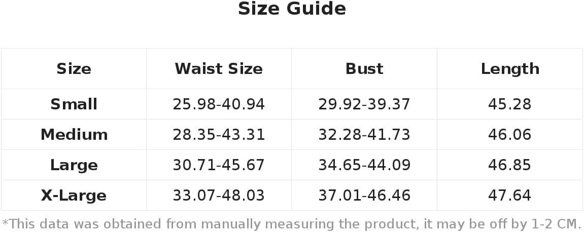 GG: Tamanho da cintura: 84-122 cm, busto: 94-117 cm, comprimento: 129 cm