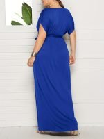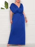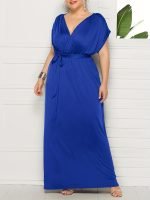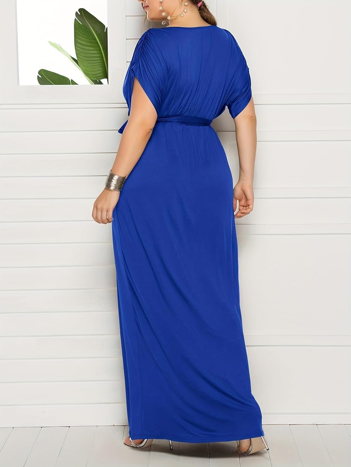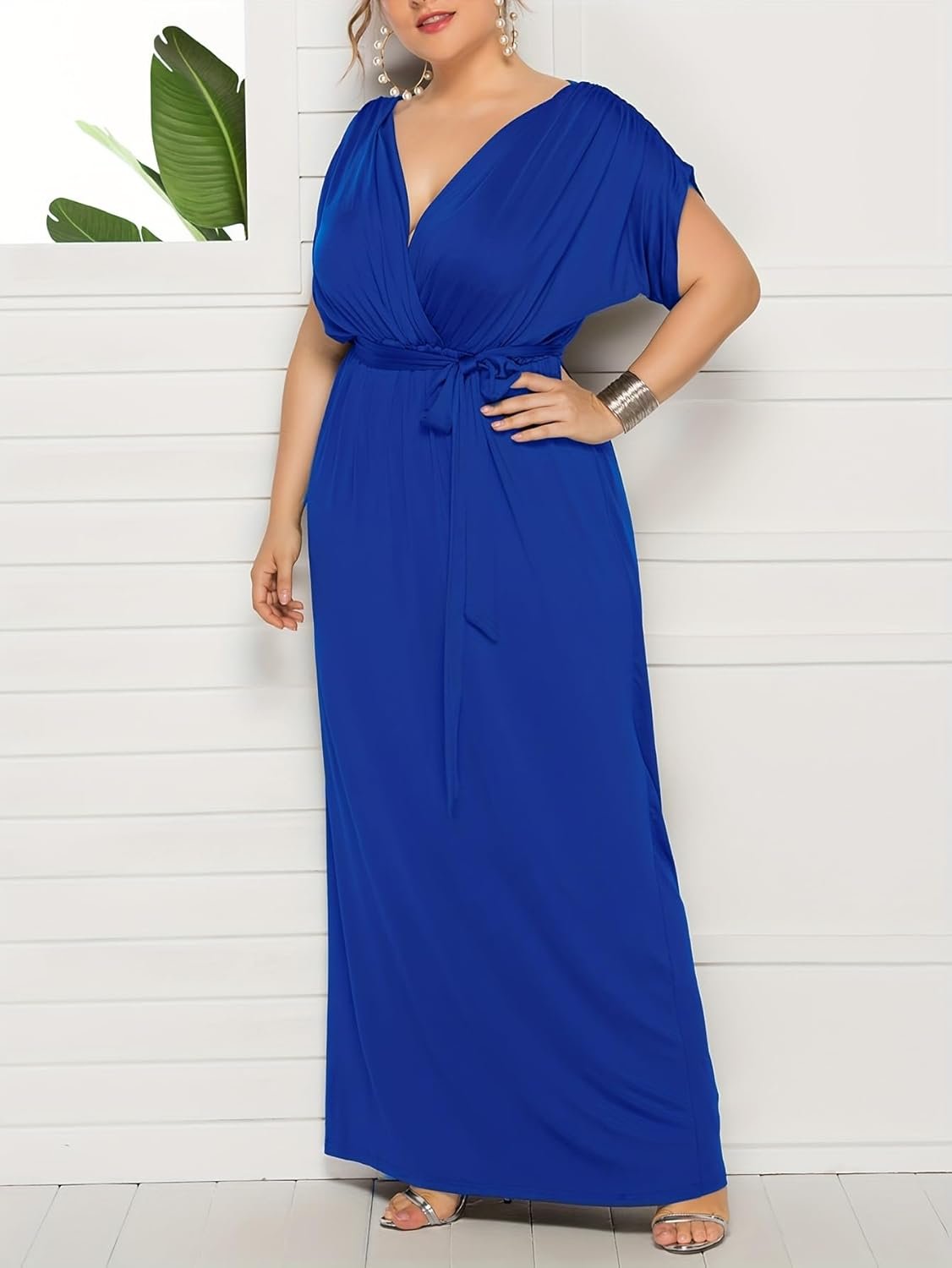 Vestidos maxi plus size para convidados de casamento para mulheres curvilíneas verão formal gola V manga curta maxi vestido de festa DJ3310